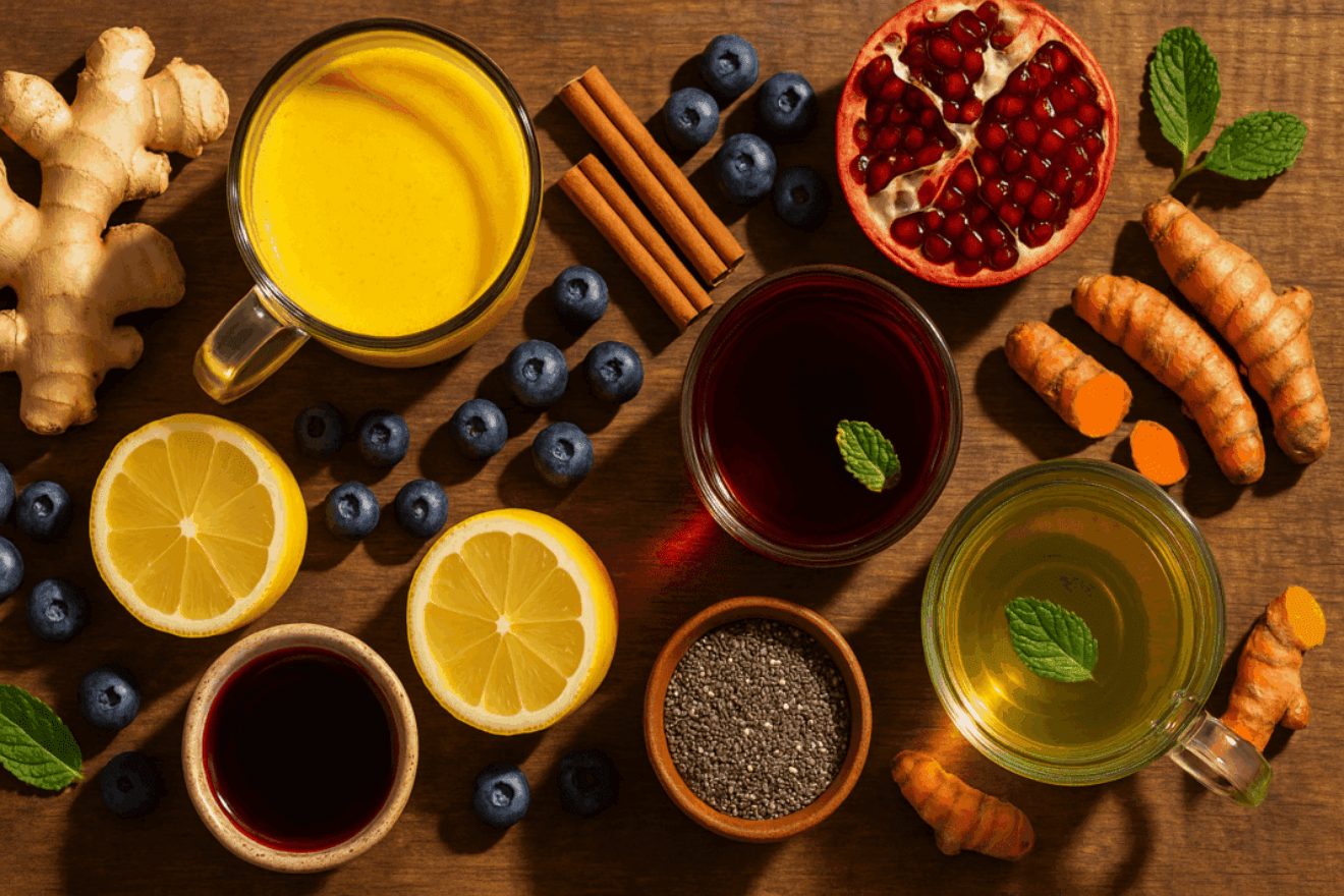 There are several simple anti-inflammatory drinks that are powerful daily swaps to nourish your gut, improve blood flow, stabilise blood sugar, and calm systemic inflammation, especially when they replace alcohol or unhealthy sodas.